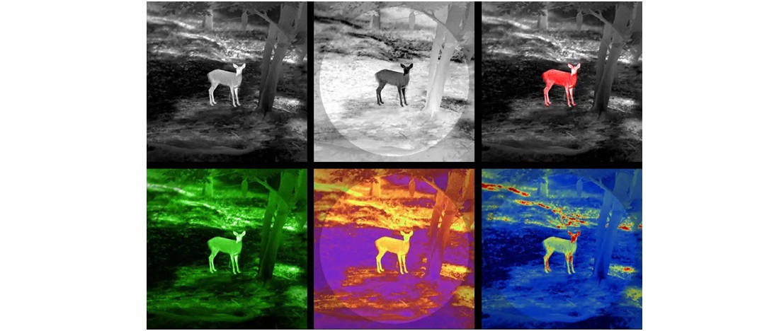 Модель надає можливість вибору з 5 колірних схем, де є монохромні чорно-білі варіанти для далеких дистанцій і поганої видимості, так і кольорові палітри для ідентифікації мети, визначення трофейності, коротких відстаней.